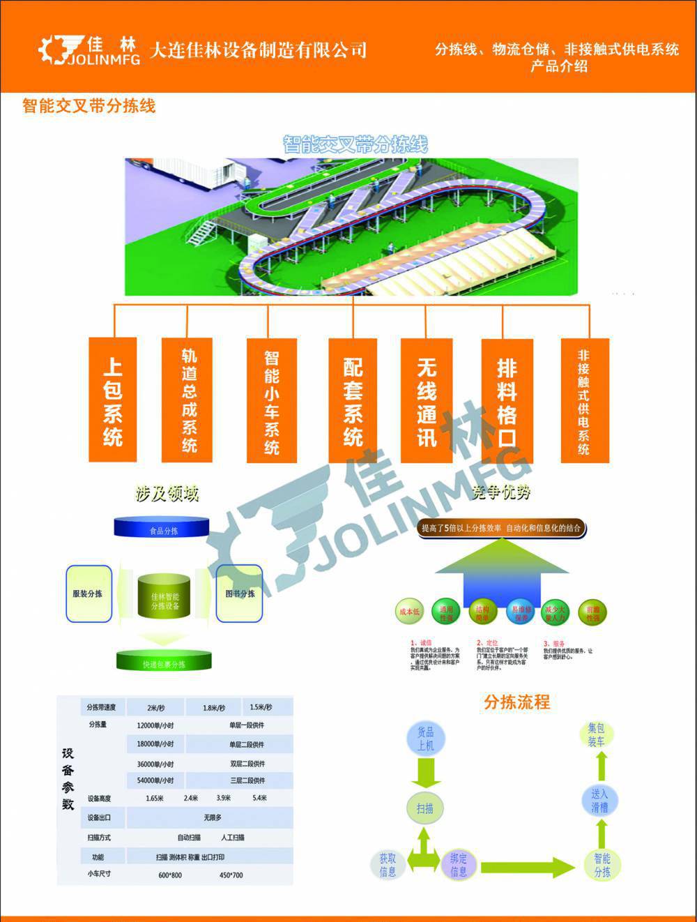 分拣线、智能仓储、垂直提升机、AGV、立体仓库、出入库系统